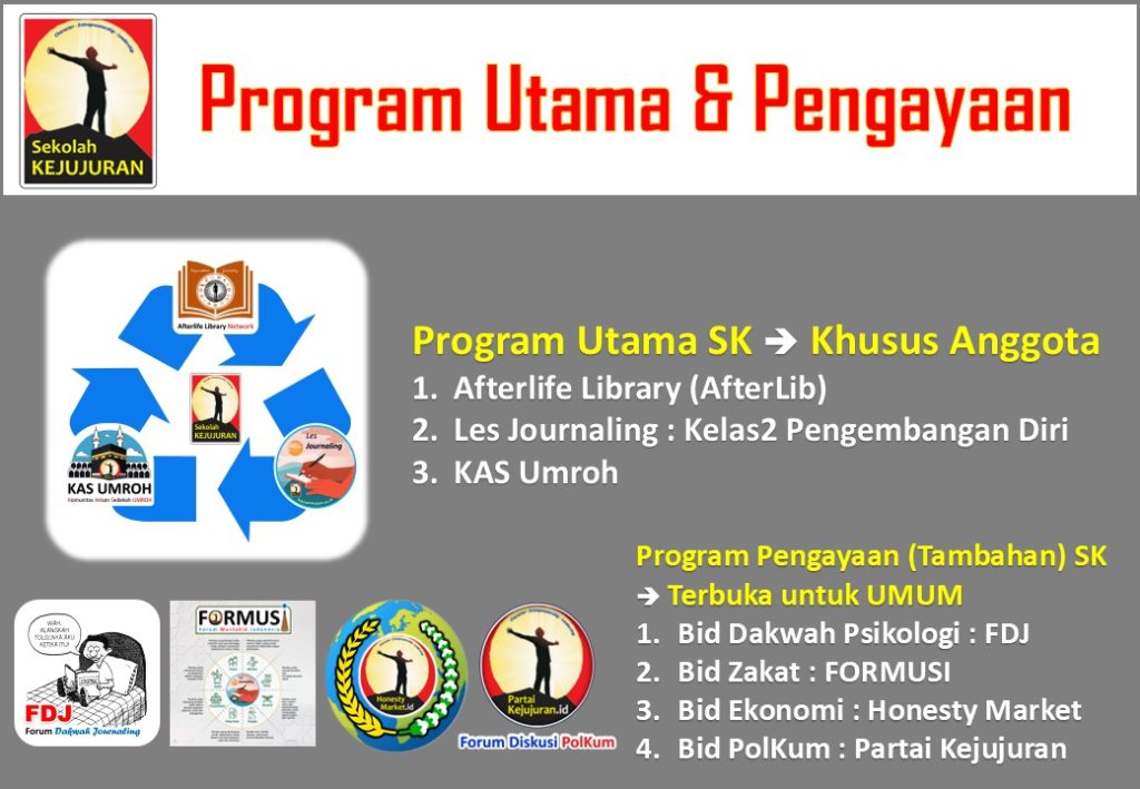 adalah sebuah Sekolah Informal Psikologi dan Kesehatan Mental yang berisi pembelajaran Journaling, Konseling & Pengembangan Diri